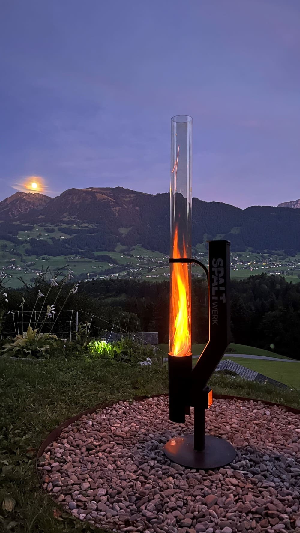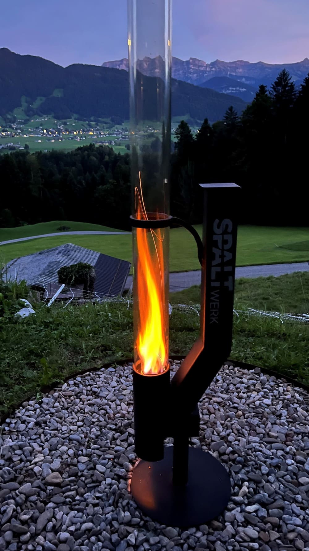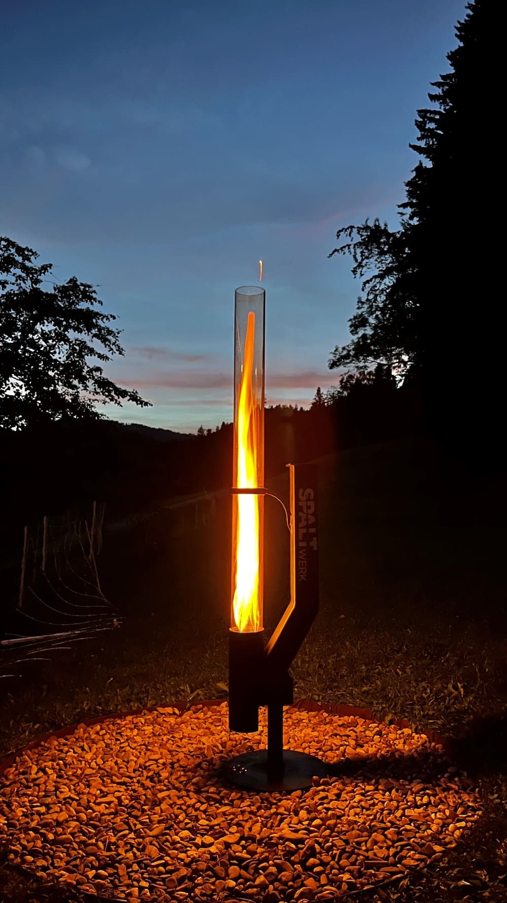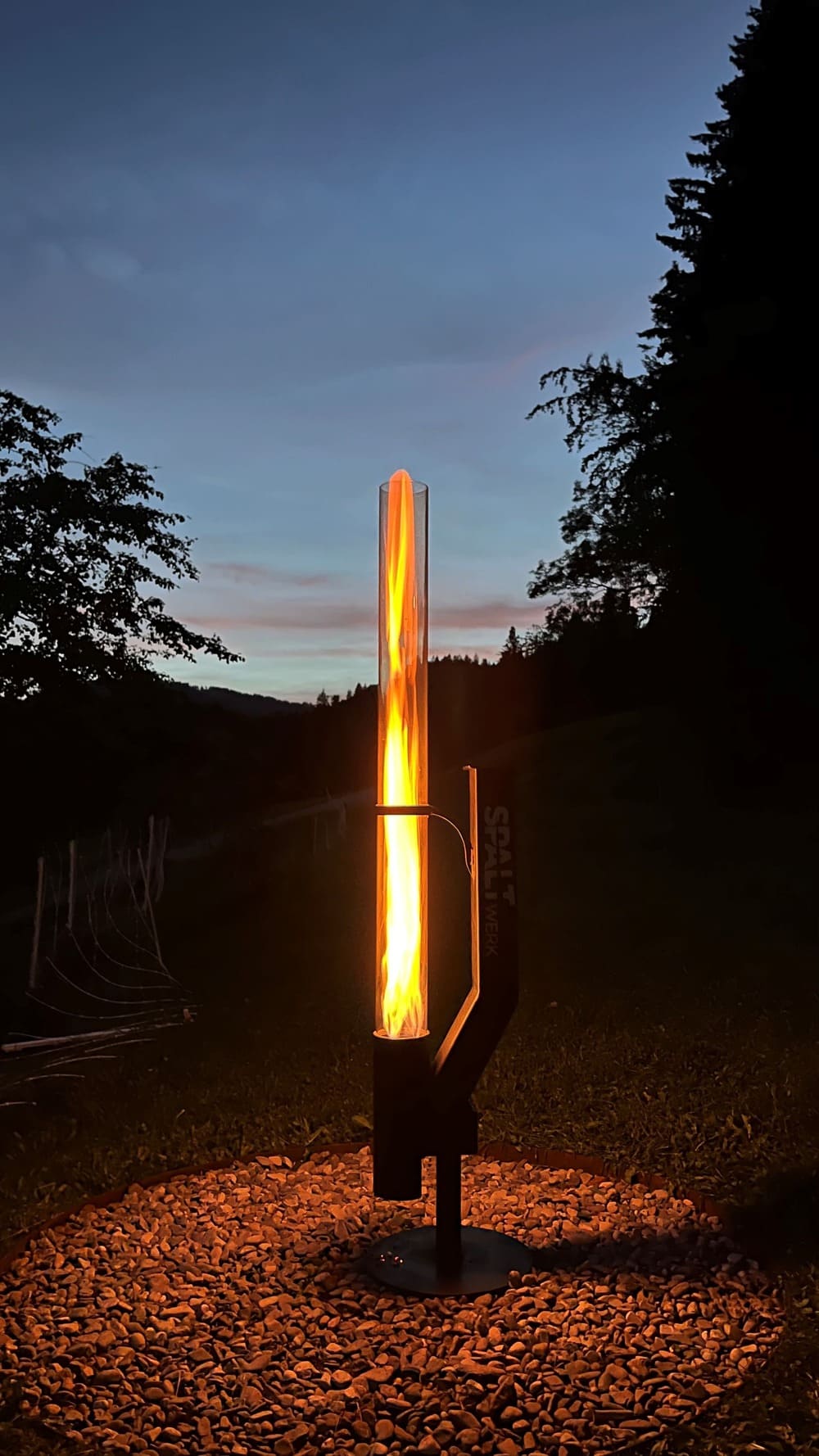 Die Feuerrakete funktioniert mit Holzpellets und bietet bis zu drei Stunden Brenndauer ohne Nachlegen. Die saubere und nahezu rauchfreie Verbrennung sorgt für ein angenehmes Flammenspiel bei gleichzeitig minimaler Umweltbelastung.